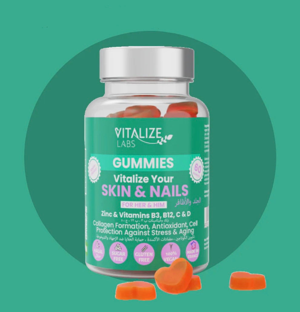 Our glow-enhancing gummies are powered by zinc, nettle extract, and essential vitamins B3, B12, C, and D — a feel-good formula designed to support clear, healthy skin and resilient nails. No fluff, just results that shine through.